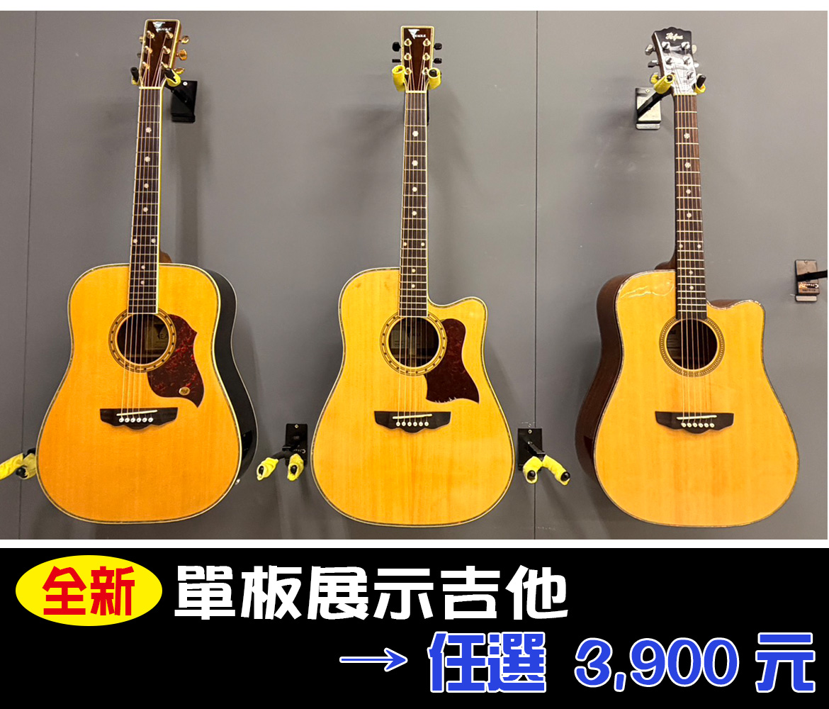 現場所有展示單板吉他,一律任選特價 $3,900 元!