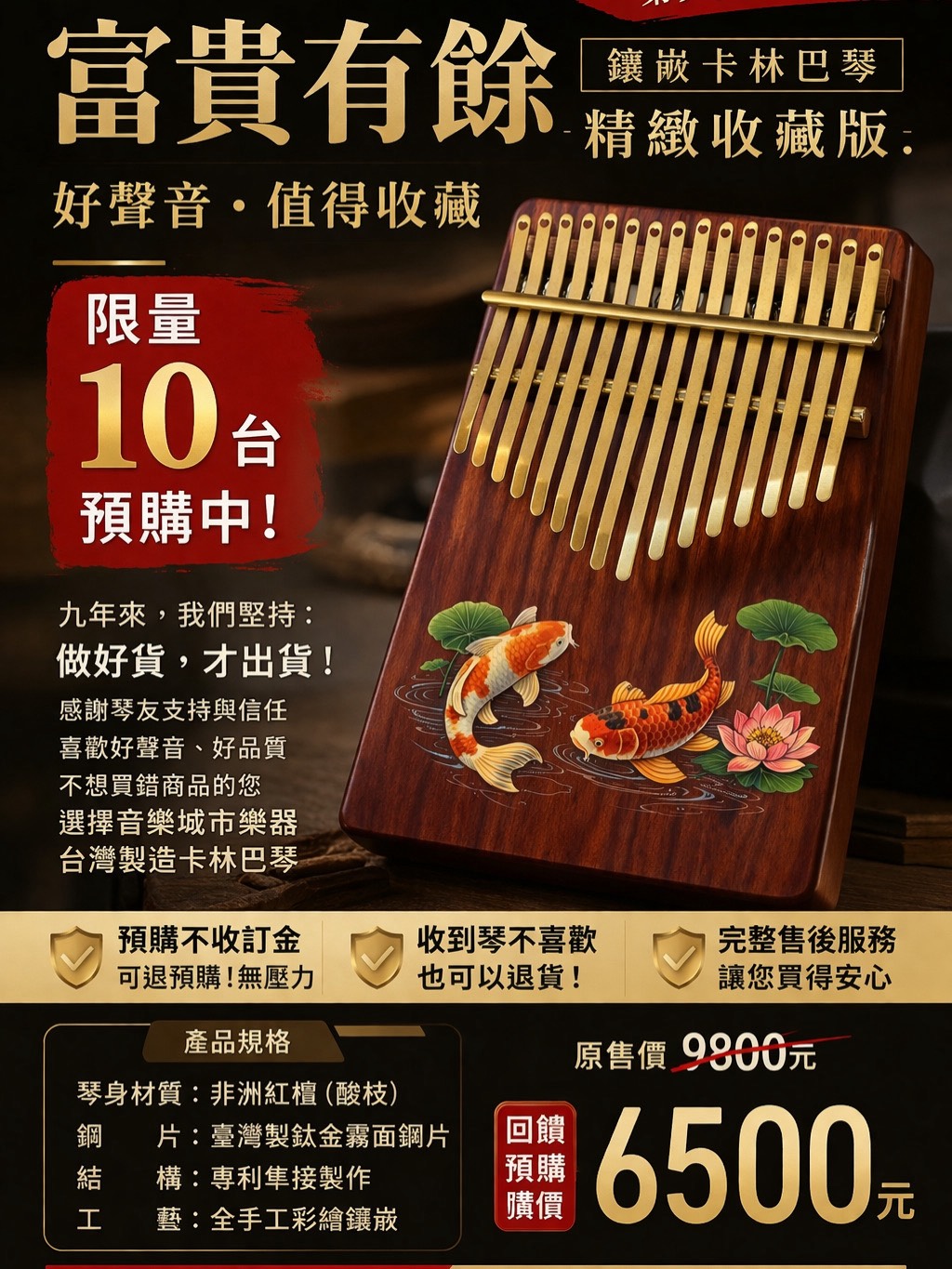 【限量珍藏|富貴有餘 鑲嵌卡林巴琴|台灣製造精品登場】