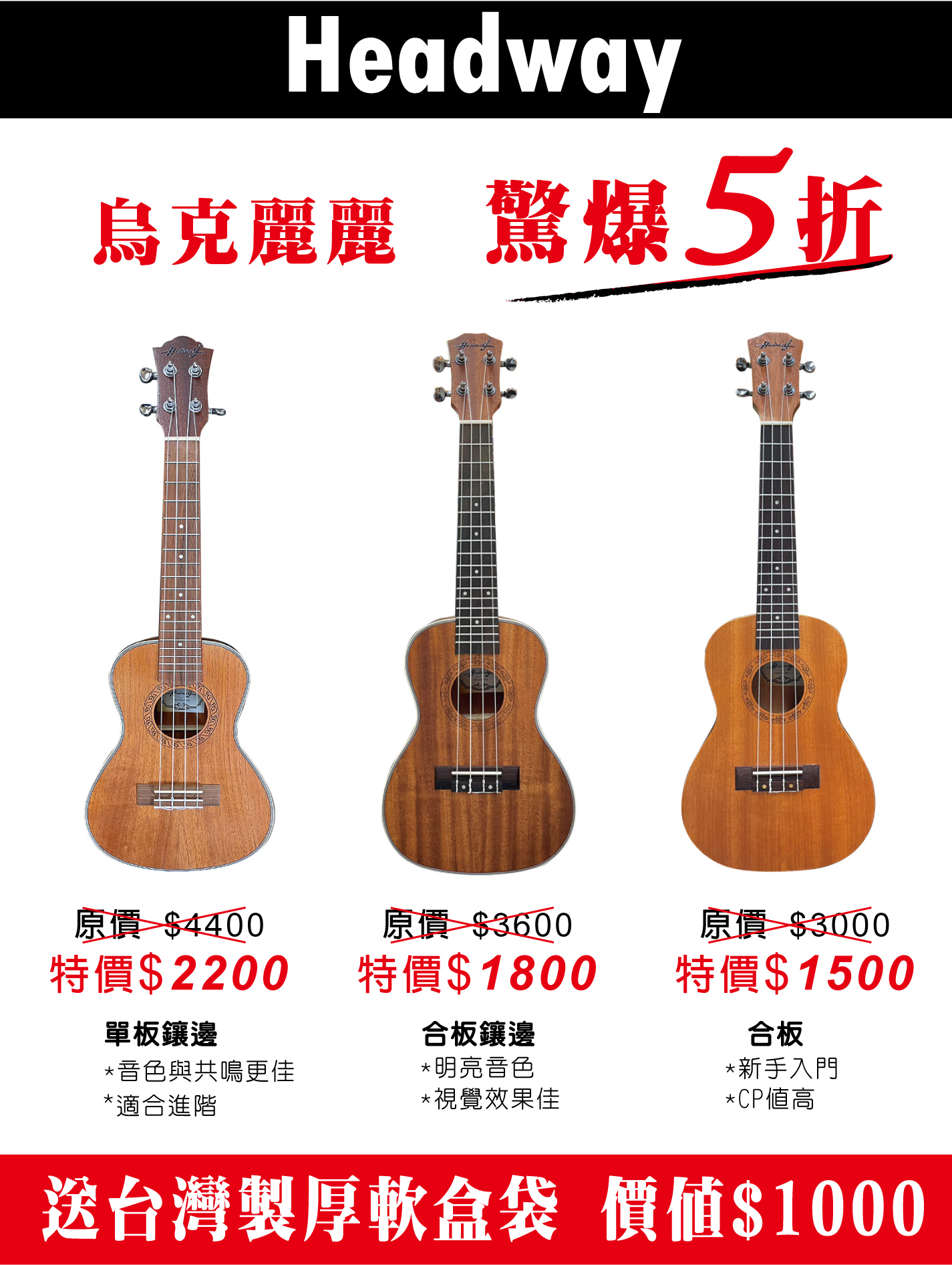 最低只要 NT$1,500 起,就能擁有正統 Headway 烏克麗麗!