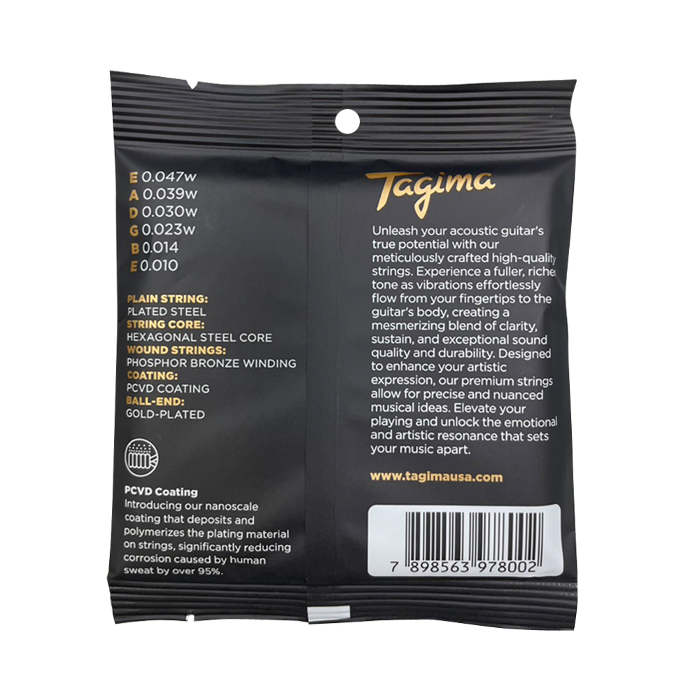 音色:磷青銅弦通常帶來「明亮、清澈、溫暖」的聲音。中高頻較為突出,泛音清晰,非常適合民謠、指彈 或清音 的演奏風格。