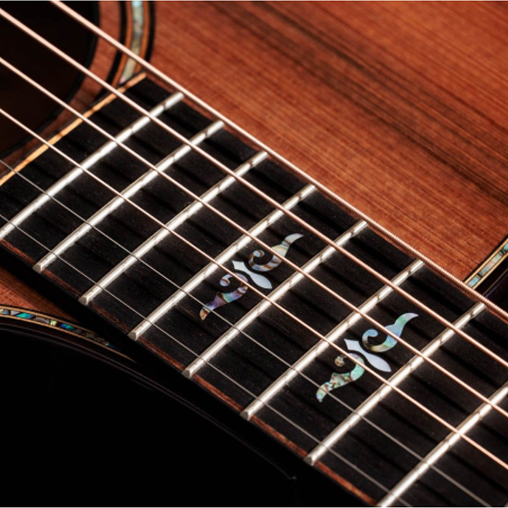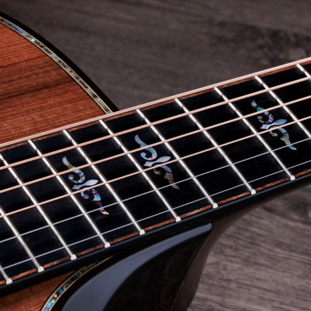 世界一流的音木、提升舒適度的設計元素以及一系列奢華配置,令 Builder’s Edition 912ce 成為一款視覺、聽覺和觸覺上的傑作。實心洪都拉斯玫瑰木背側板帶來質感細膩、諧波豐富的音色,低音溫暖,高音如鋼琴般清亮,泛音飽滿而富有層次感,清晰度足以穿透混音。精選的條紋沈水紅木面板,取材自加州富含淤泥的河床中沉睡數十年的原木,賦予其類似雪鬆的溫暖音色和触感靈敏度,同時帶來更高的音量上限和更寬廣的動態範圍。 V-Class 音色架構進一步提升了反應速度,帶來更強勁的力道和更長的延音。同時,大音樂會琴體憑藉其較短的有效弦長、更輕的弦張力和更靈敏的觸感,依然提供舒適的演奏體驗。斜切式扶手和缺角、倒角琴體邊緣以及流暢的 Curve Wing 琴橋,共同打造了極致舒適的演奏體驗。外觀方面,背側板採用 Kona 漸變色木紋,琴頸根部採用漸變色木紋,配以夏威夷寇阿木鑲邊、鮑魚貝邊飾、鮑魚貝和珍珠母貝 Belle Fleur 鑲嵌,以及復古金色 Gotoh 510 弦鈕。隨琴附贈 ES2 電路系統和硬殼琴盒。